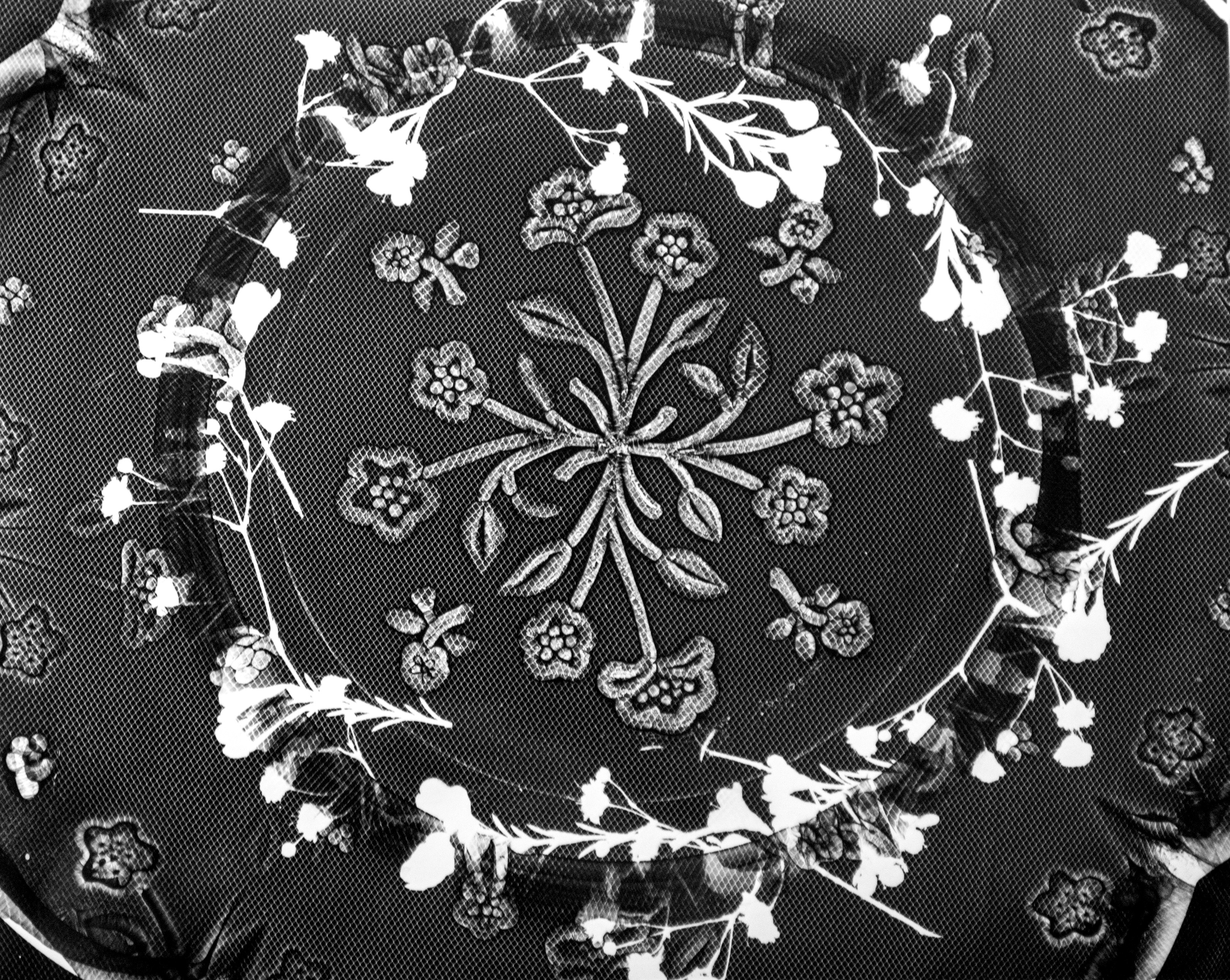 captivating photogram crafted with embroidered tulle and delicate, dehydrated flowers, evoking a sense of romance and nostalgia that transports viewers to a bygone era. As light filters through the layers of tulle and falls upon the dehydrated flowers, a soft, ethereal glow suffuses the scene, casting a spell of enchantment and romance. Shadows dance and flicker across the fabric, creating an atmosphere of mystery and allure that beckons viewers to linger and explore.