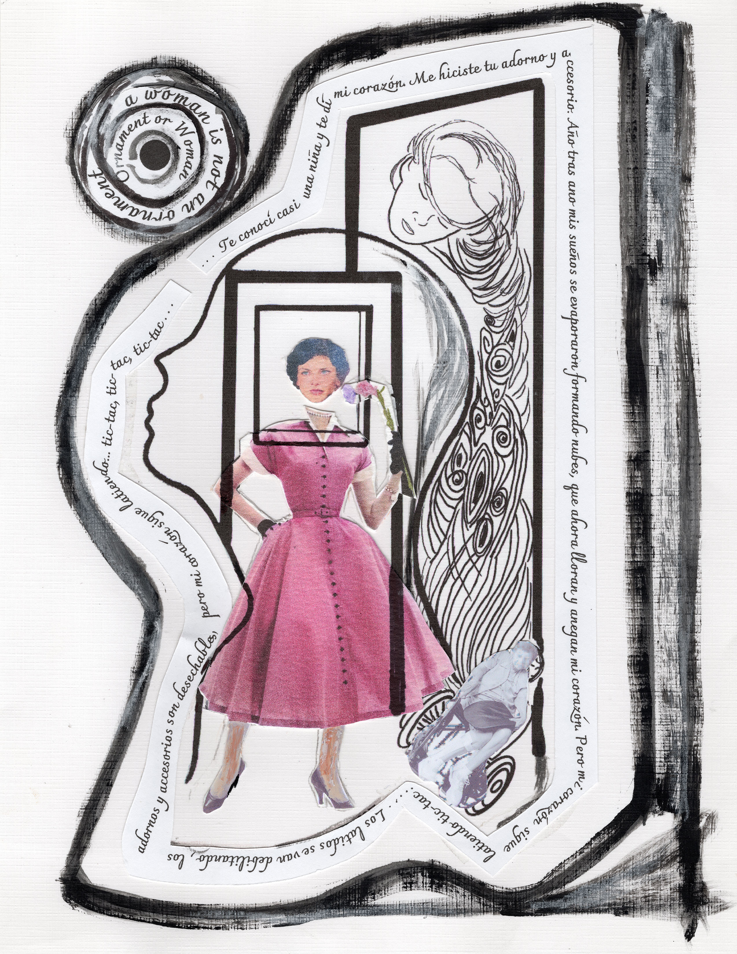 Mixed media digital collage that serves as a tribute to women who have endured physical and emotional abuse. The piece blends photography, ink, watercolor, and digital composition.Surrounding the imagery, I inscribed a personal poem that declares: “I am a woman, not an ornament.” The work directly confronts the misogyny and abuse , reclaiming voice and agency for my mother and for all women who have suffered in silence.This piece is both remembrance and resistance—a call to see women not as decorations, but as whole, powerful beings shaped by their own stories.