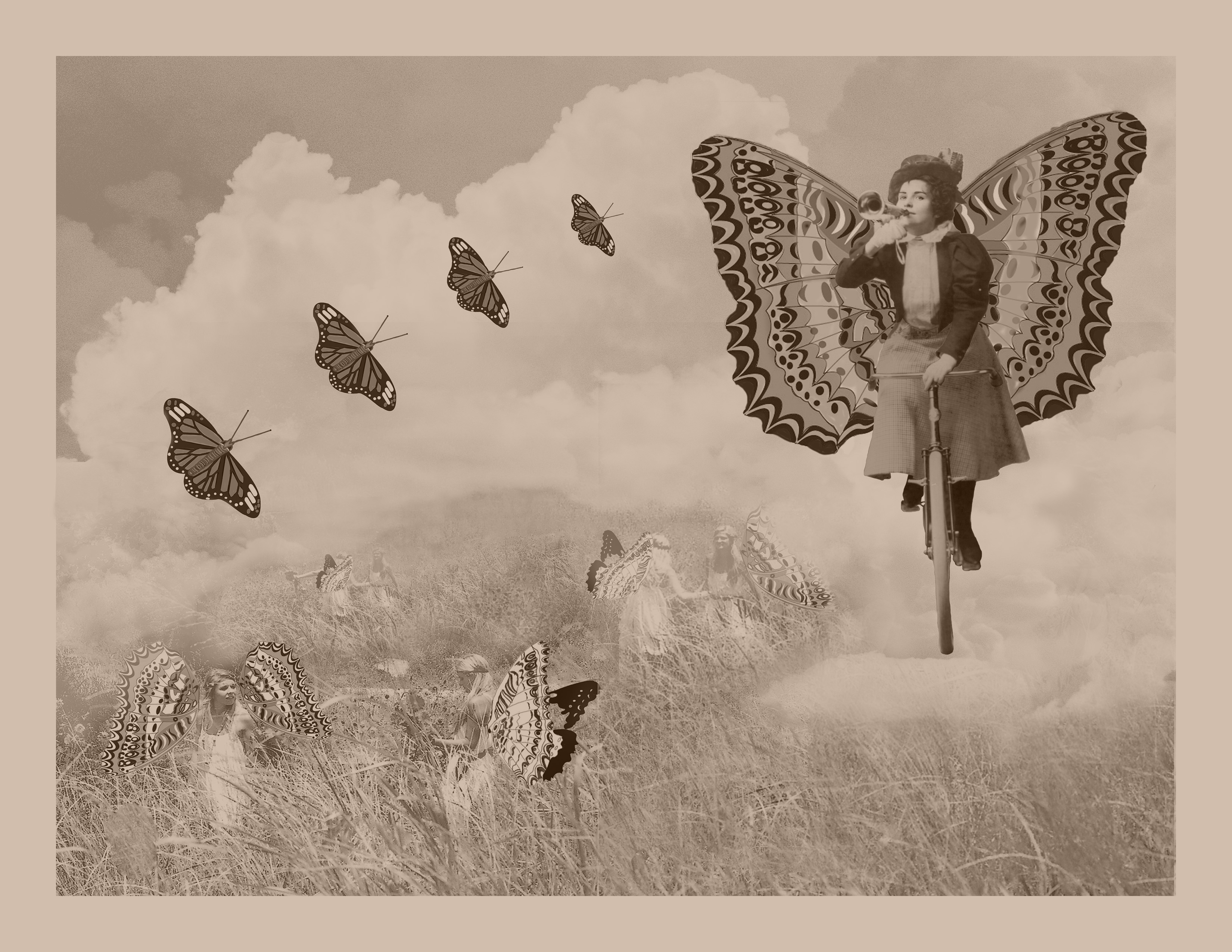 This mixed media piece weaves photography, printmaking, poetry, and paint into a layered meditation on memory and transformation. A vintage box camera carved in wood releases butterflies—symbols of fleeting beauty and the soul—alongside a poem etched between them. Masked beneath the camera, the image of the photographer subtly emerges, anchoring the ephemeral in presence. Acrylic and watercolor add delicate detail, infusing the work with light, motion, and emotional depth.
